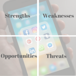 For the opportunities category of a SWOT analysis, look at your business currently and what your short-term and long-term goals are, and what your business needs to do to achieve them. Think about ways that your business can grow it’s existing customer base. The bigger you think, the more opportunities you’ll uncover. The final part of this analysis is to identify threats that could hurt the success of your brand. Be aware of competition and know what their strengths are. If they’re Social Media accounts are more successful, evaluate what they’re doing to get ahead. The more informed you are about potential road blocks, the better prepared you are to face these problems head on.